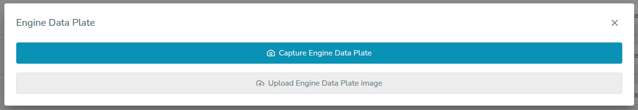 Click on the button: Within the Aiir application, locate and click on the 'Engine Plate' or ‘A/C Tail Sign’ button. This action will allow you to capture or upload a snapshot of the Engine Data Plate or Aircraft Tail Sign.