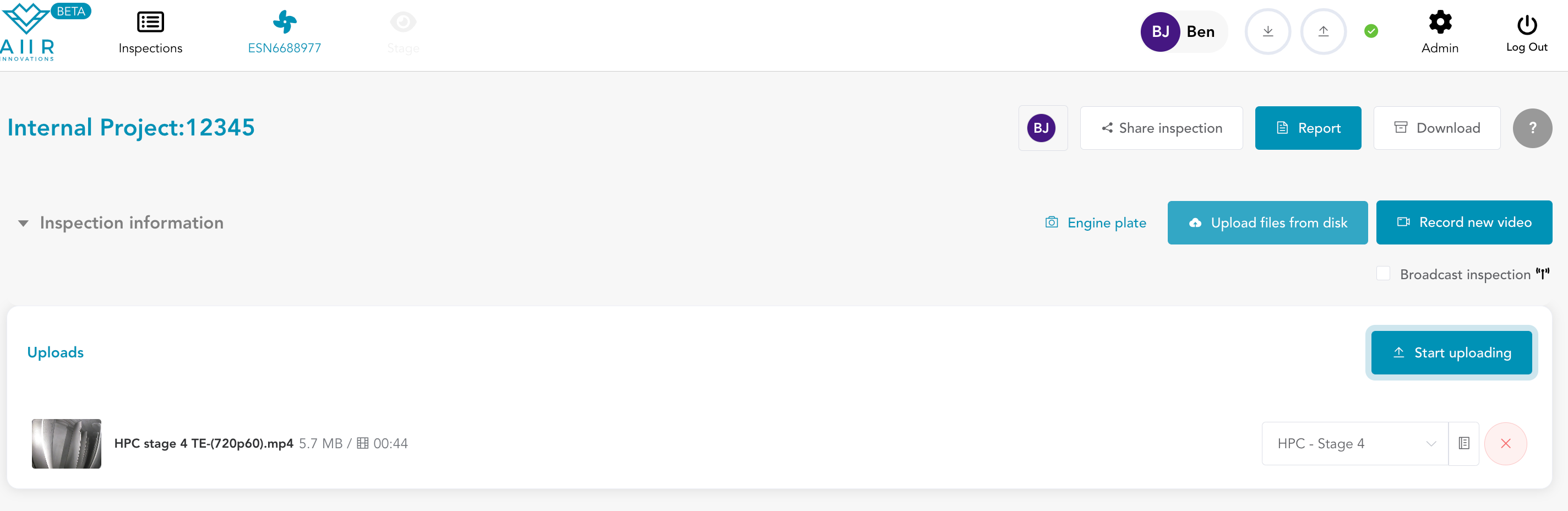 If not, you will need to manually select the Module and Stage from the file name that corresponds to the inspection conducted in the video.Start Uploading: After confirming the Module and Stage information, click ‘Start Uploading.'