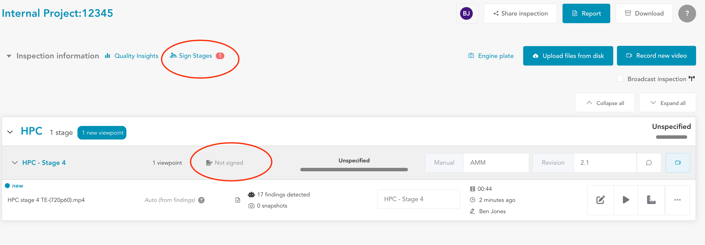 Review Findings: Aiir AI Co-pilot will start reviewing the inspection footage frame by frame. During this process, findings may be generated and shared for your review. You can start reviewing the findings while Aiir AI Co-pilot is processing the video, or you can wait until the process is complete. Once the processing is complete, the findings will appear in the Inspection view against the corresponding Module and Stage names. You can access and review these findings for further action or analysis.