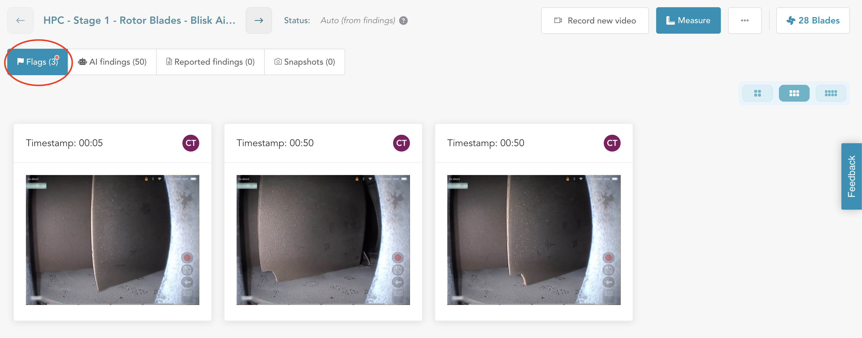 The first tab on this view is 'Flags,' which presents a gallery view of all the images/observations you flagged during the inspection recording. This section provides you with the opportunity to review, process, and take action on each flagged item.