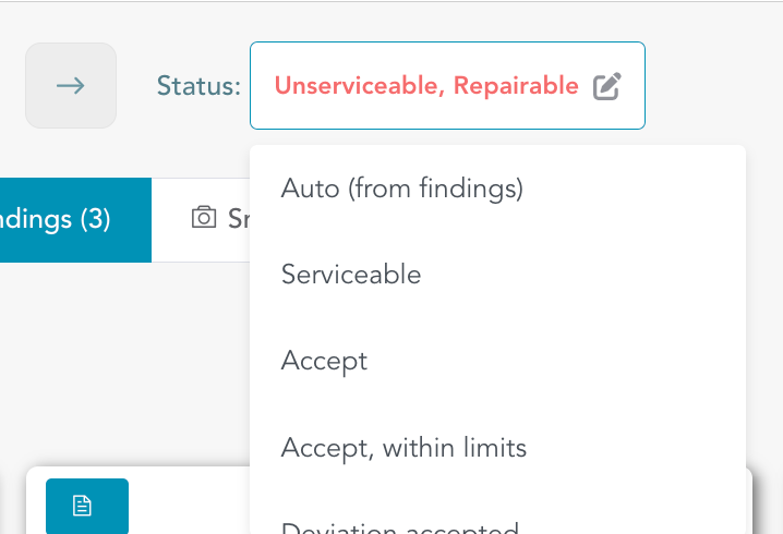 Update Status : The status is auto-selected based on the reported findings, buy you can override the set status and update manually based on your judgement. You can also do the same from Inspection overview mode.