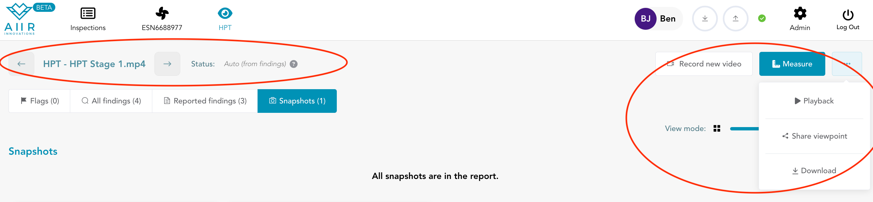Playback: Utilize the 'Playback' option to replay the inspection video. This feature is particularly useful for generating additional flags or adding more findings during the review process. By revisiting the video, you can ensure that all critical details are captured and documented.