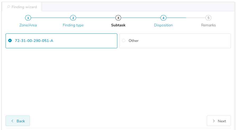 Step 3: Subtask: Aiir Assisted Reporting provides list of available subtasks, based on the selected AMM/EM.