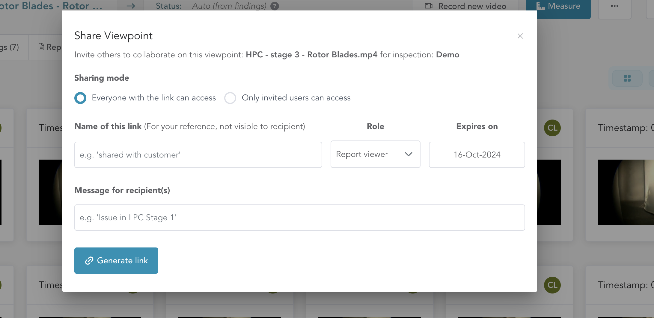 Expires On: You can set the date by which the shared inspection link will expire. The recipient will not be able to access the inspection after this date. You can always come back and extend the date as needed.