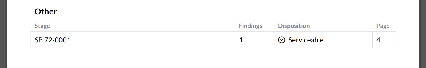 Report: Once you are done, you can generate your report. You will find your Service Bulletin data at the end of the document under the section Other.