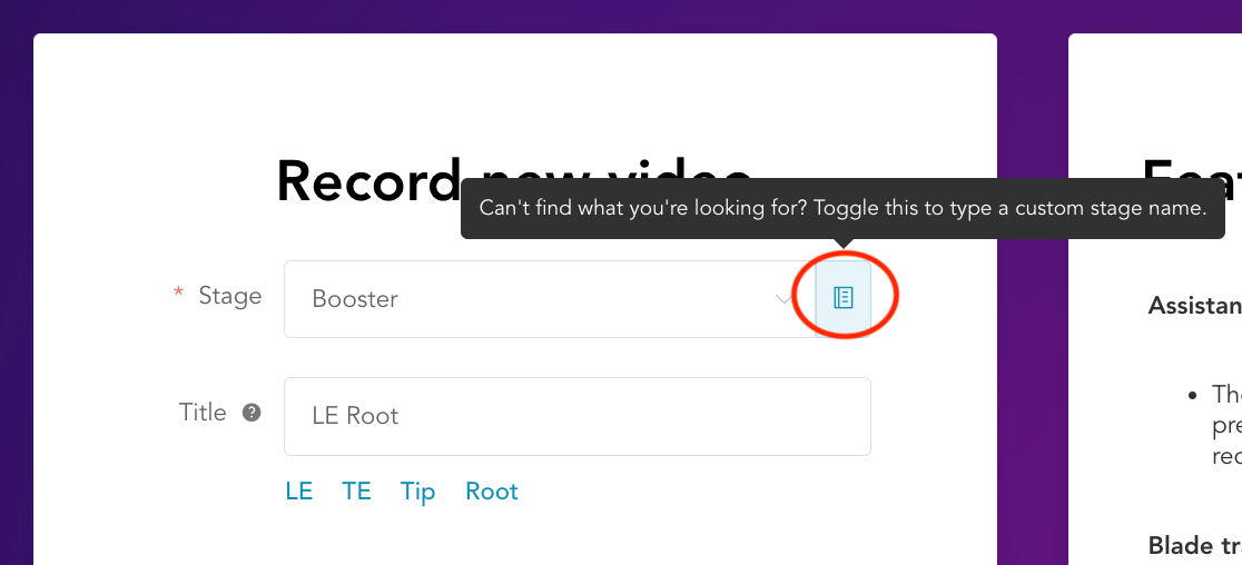 To record Service Bulletins, you have to create a Custom Stage. From there, you can record a video and store all required information. To do so, follow these steps: