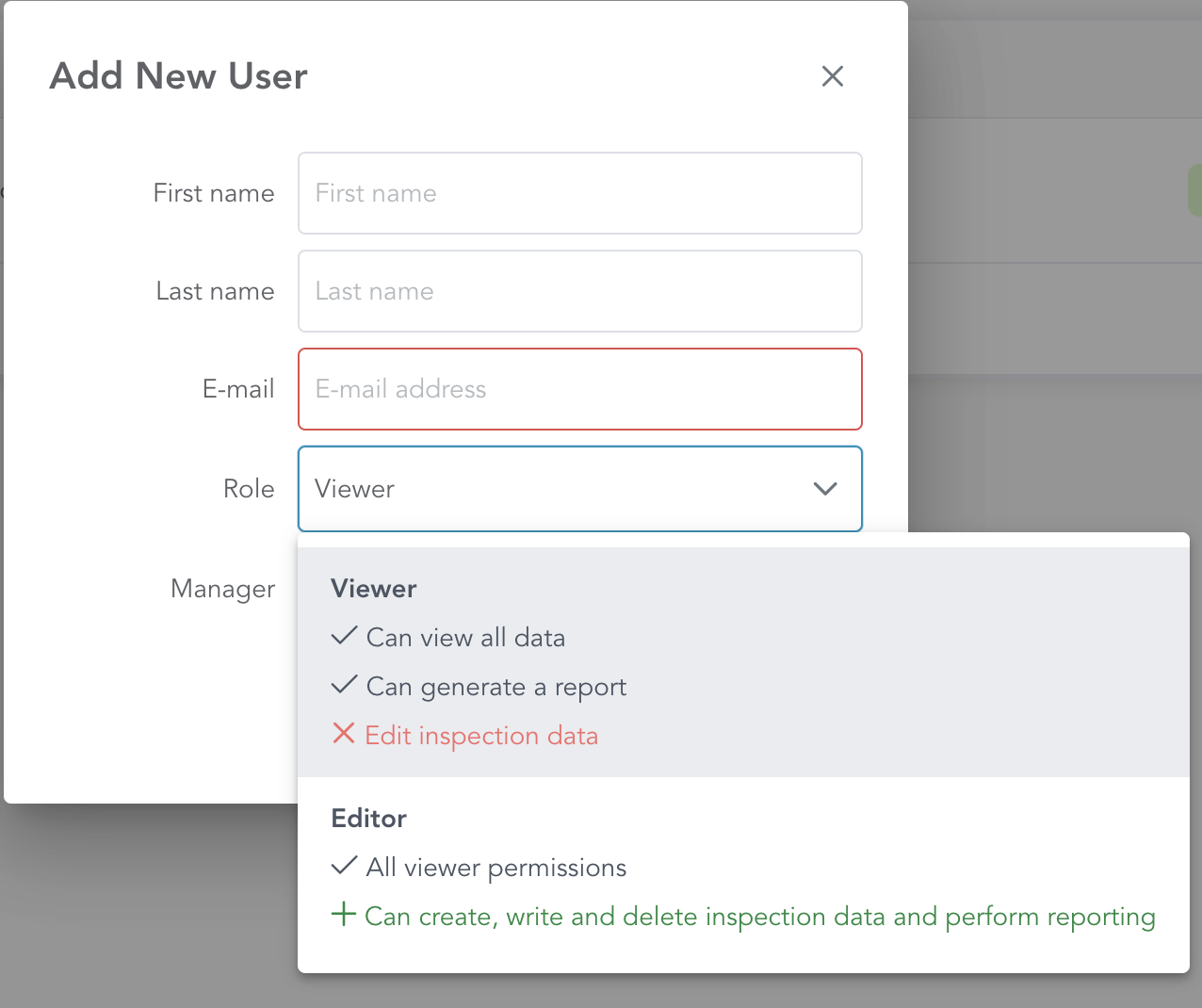 User Roles in Aiir allow you to control how users interact with inspection data, enhancing security and minimising the risk of accidental changes. There are two main roles available:-