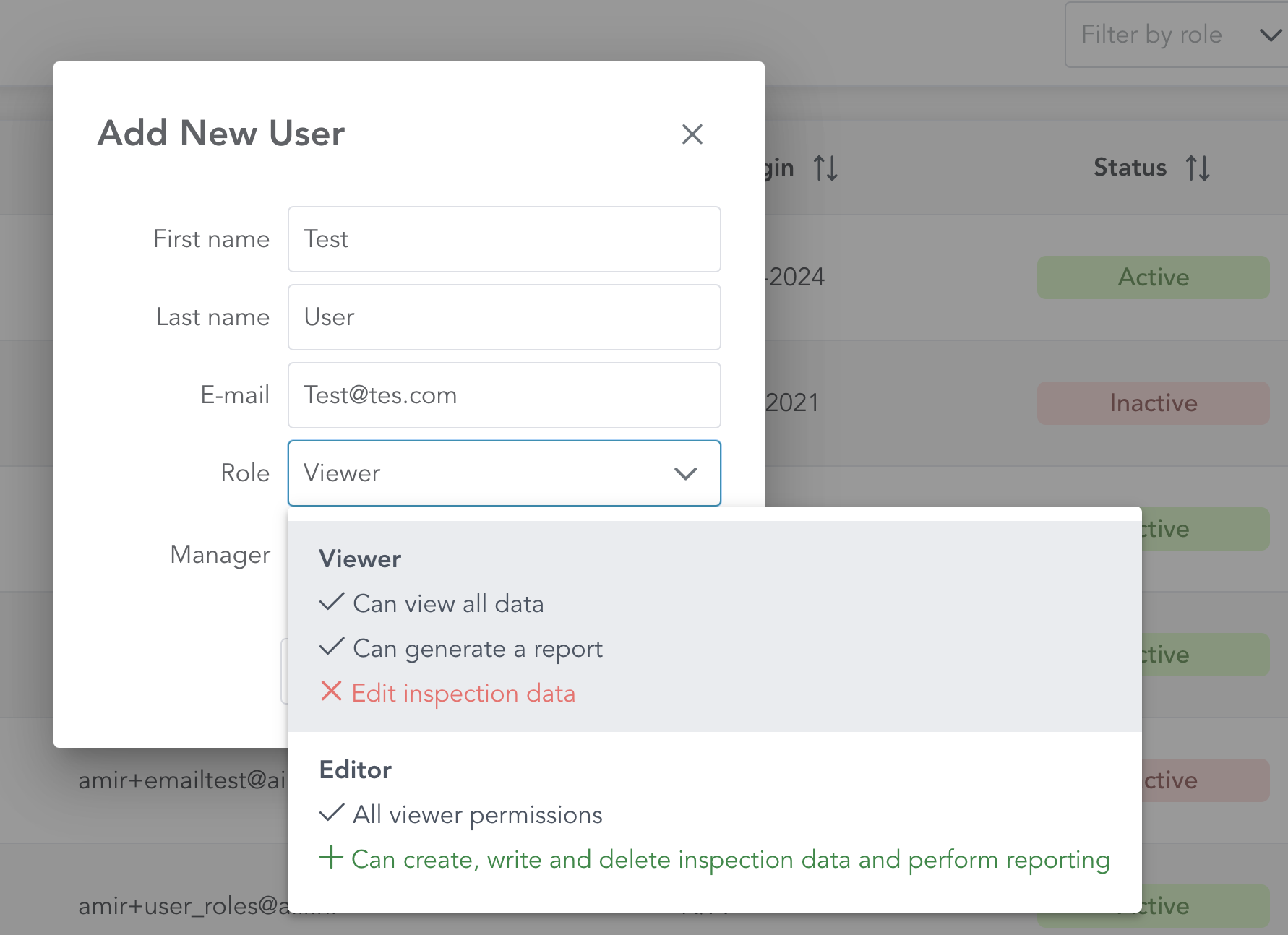 Editor Role: Users with this role can view, edit, and delete inspection data as needed. This role mirrors the default permissions we had before.