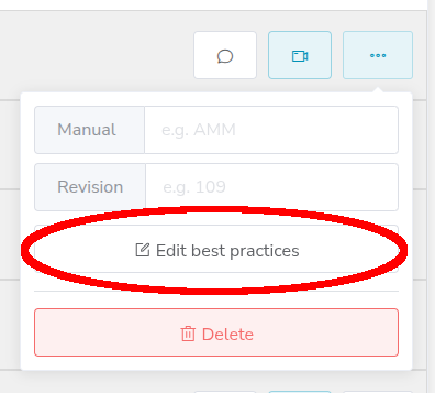 To easily edit all best practices for a specific engine family, you can also edit the best practices in the Overview. If you have no videos in the inspection, you can also prefill an inspection and add the Best Practices information quickly.