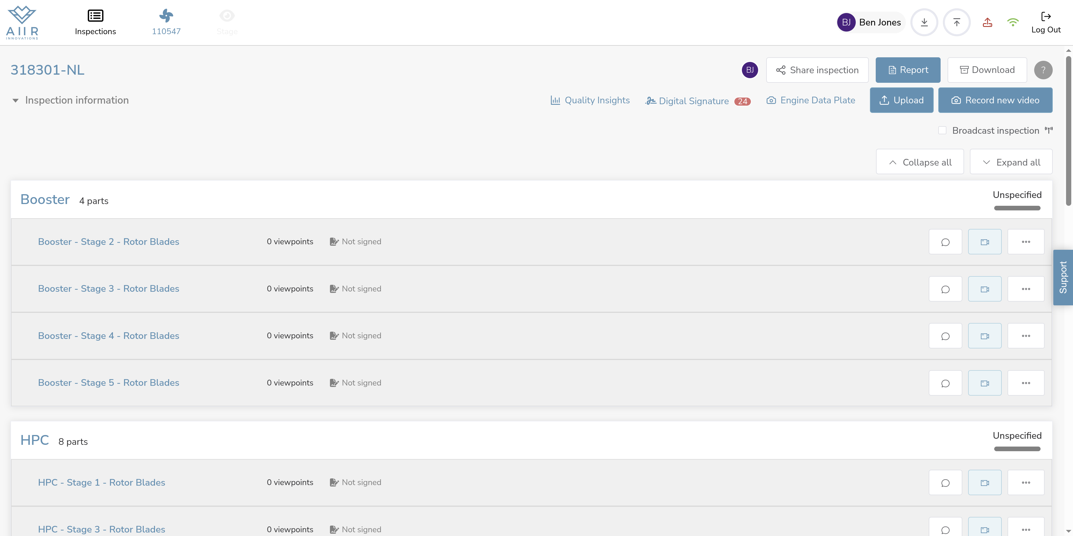 Once you have created an inspection as per the previous step, you will be directed to an 'Inspection overview' where you can access the inspection's details. Here's how to explore the inspection's modules, stages, and tasks:
