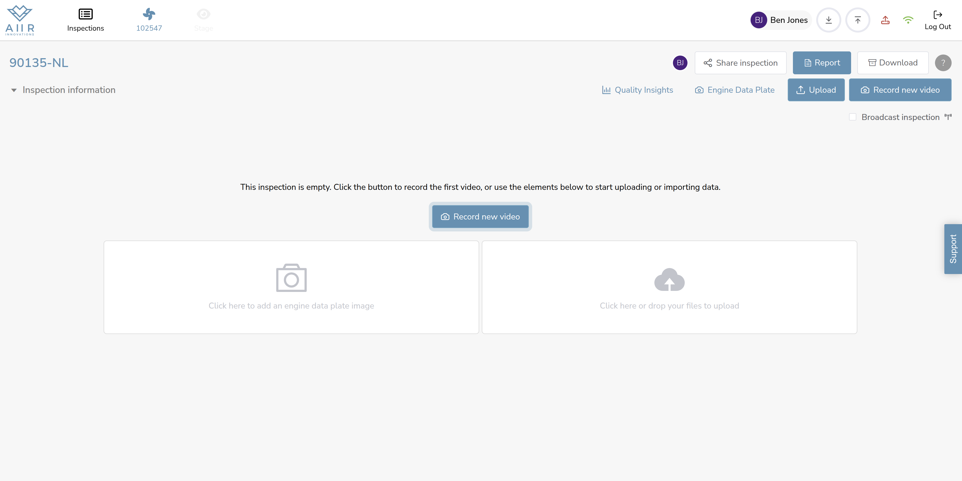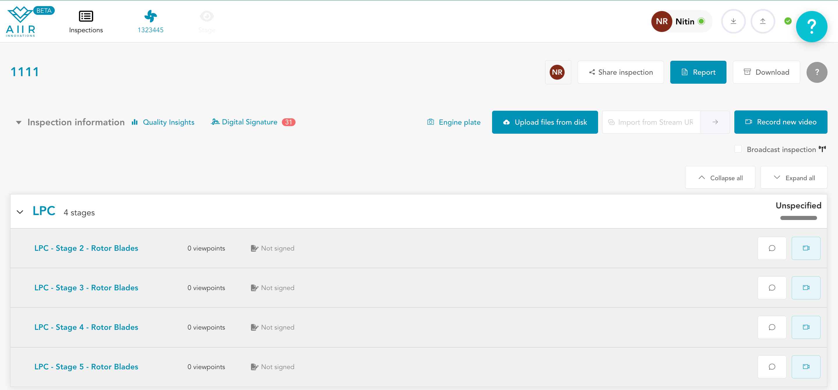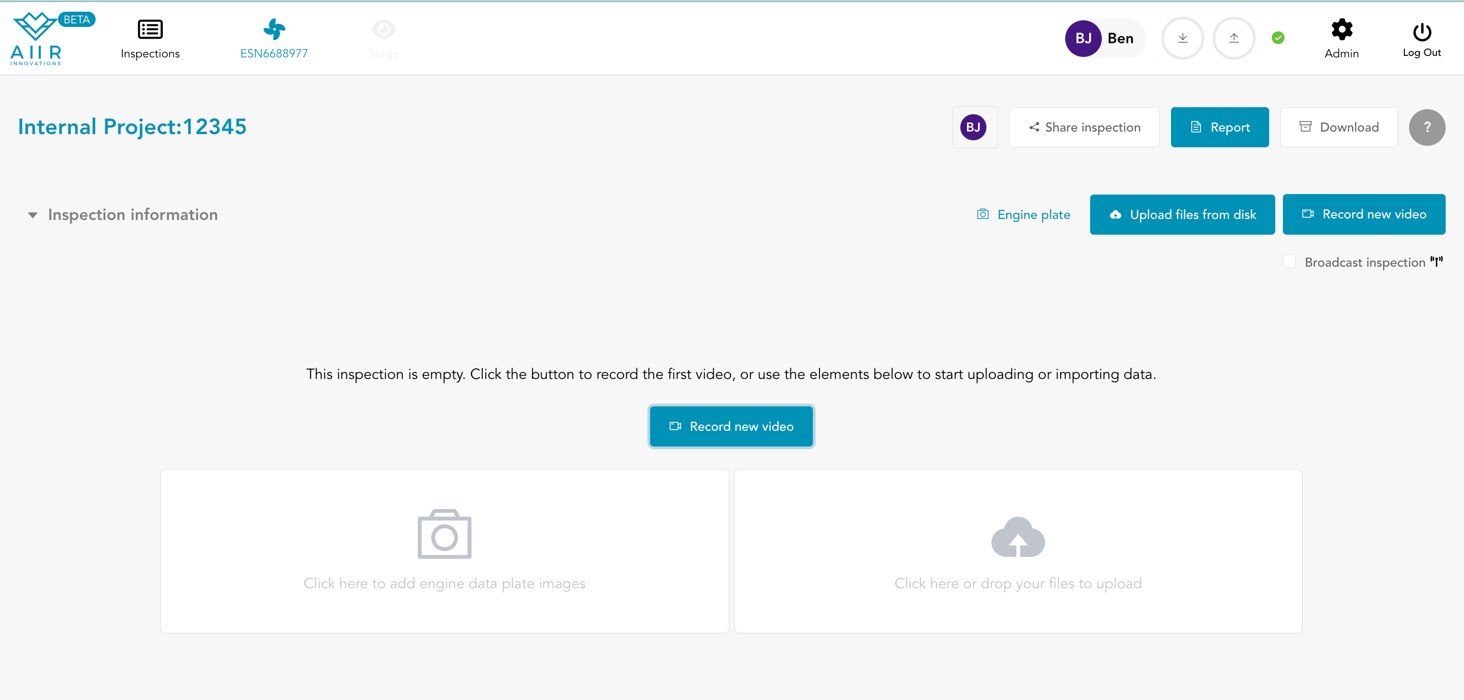 No Pre-filling Enabled : If the 'Pre-filling' module is not enabled for your organization, you will see the 'Inspection View' without any modules and stages pre-defined. In this case, you can proceed with your inspection as per the further steps explained.